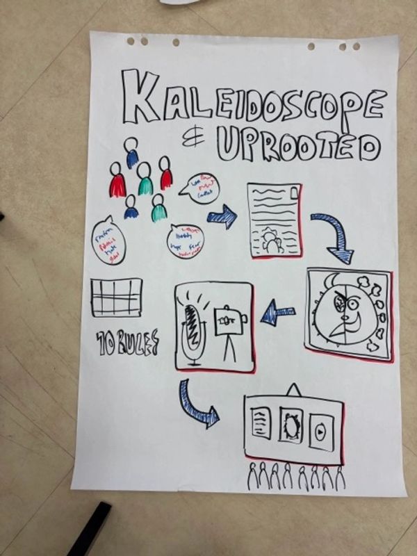 During the Uprooted Youth Meeting in Litoměřice, Czechia 🇨🇿 participants from 4 countries (Poland, Czechia, Ukraine and Germany) were introduced to the Kaleidoscope methods and were split into 4 small groups and worked through the process to create the following outputs.
